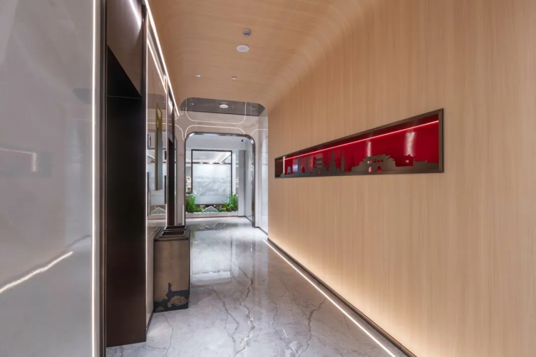 主材:巖板、淺木色飾面板、仿壁布快裝墻板、不銹鋼等