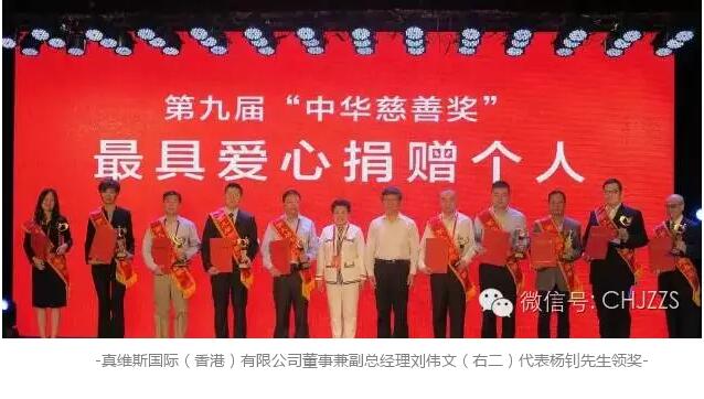 中華慈善獎是中國公益慈善領域中的最高政府獎,旨在褒揚在賑災、扶老、助殘、救孤、濟困、助學、助醫以及支持文化藝術、環境保護等公益慈善領域做出突出貢獻的個人、機構及項目。楊釗先生獲授予第九屆中華慈善獎最具愛心捐贈個人(全國僅10位慈善家受到此表彰),這也是楊釗先生個人第三次獲得中華慈善獎的殊榮。其它獲授“最具愛心捐贈個人”的慈善家還包括大連萬達集團董事長王健林、金利來集團董事局主席曾憲梓、碧桂園董事局主席楊國強。民政部指出,中華慈善獎獲得者為我國慈善事業發展提供了示范和引領,作出了杰出貢獻。