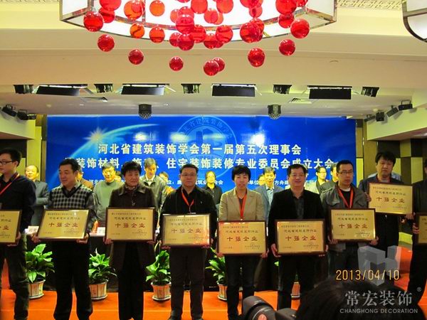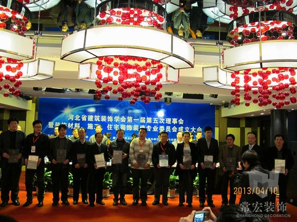 2013年4月10日,由河北省建筑裝飾學會主辦的河北省建筑裝飾學會第一屆第五次理事會暨裝飾材料、施工、住宅裝飾裝修專業委員會成立大會在唐山召開。會上,對榮獲2012年河北省建筑裝飾行業省優工程、科技示范工程及成果企業、十強企業、優秀企業家及優秀女企業家、優秀(杰出)項目經理進行表彰。