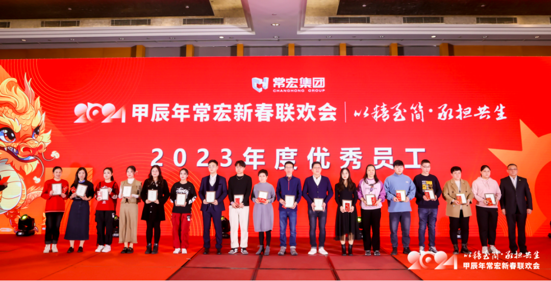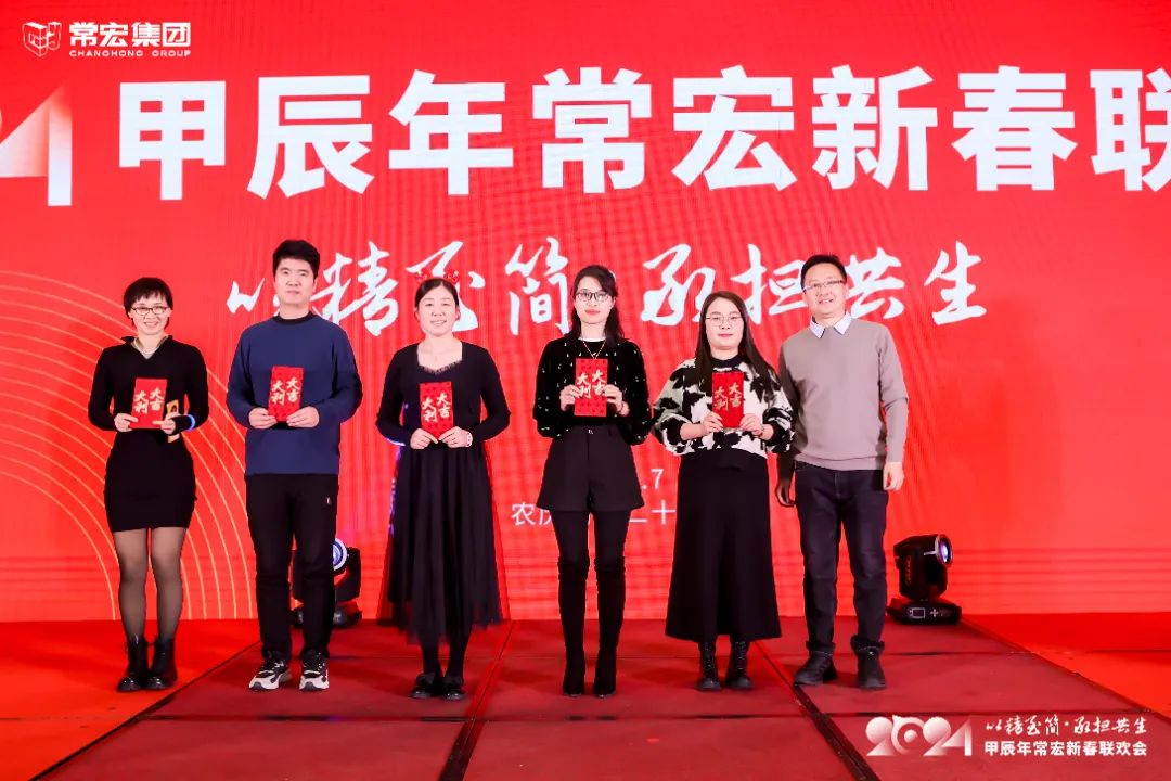 聯歡會現場,對常宏2023年度優秀員工、杰出團隊、工齡獎、榮休獎等獎項進行了表彰和頒獎,這是對常宏人辛勤付出的認可和褒獎,更是對常宏人今后更加努力拼搏的鼓勵!
