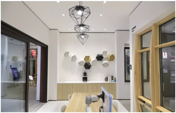 本案以類似鉆石斜切面的手法,對空間進行削切,形成嶄新的立面效果。以此來襯托出我們的門窗產品。是追求精致品質的,我們是不同于其他品牌的、我們是懷揣著鉆石般的心做產品的。