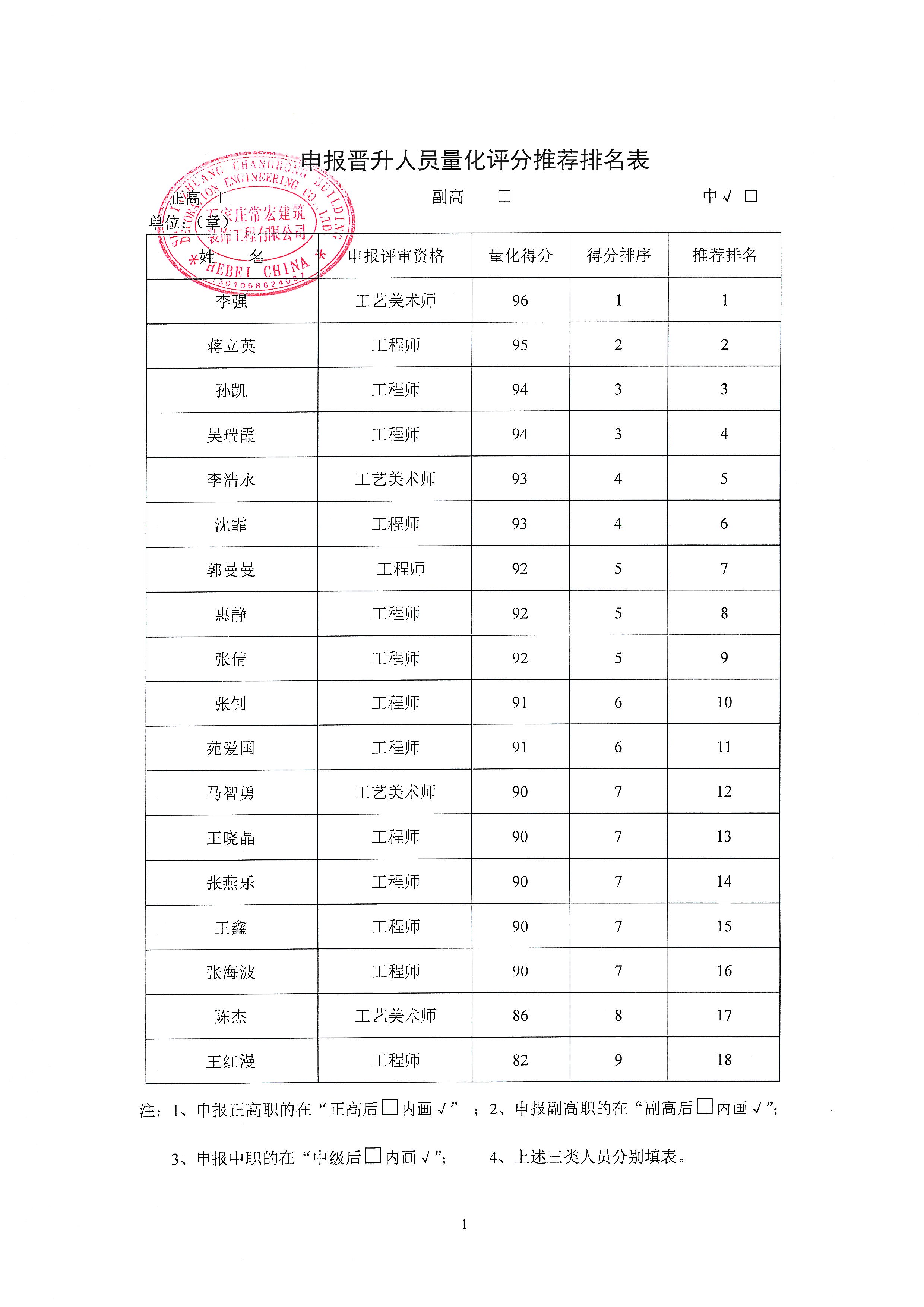 常宏裝飾高中級(jí)職稱公示文件