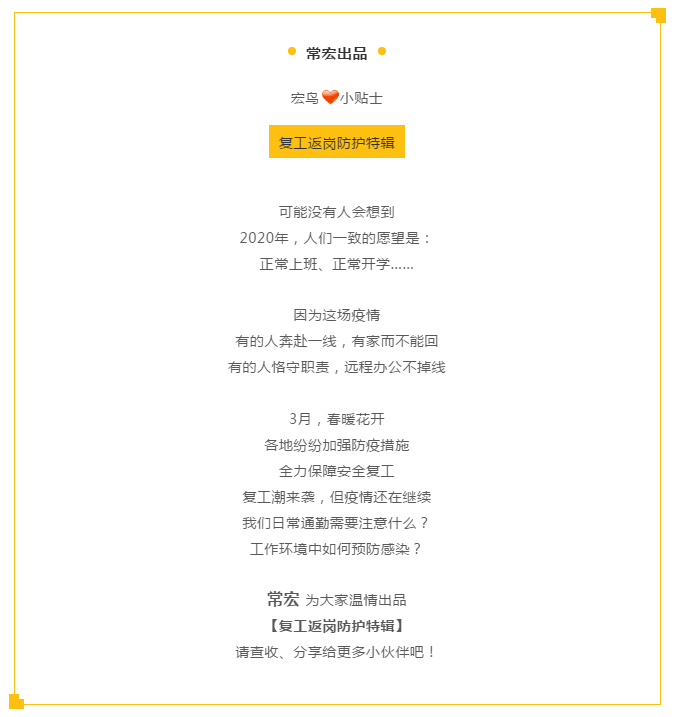 【宏鳥小貼士】復工進行中,返崗防護特輯請查收!