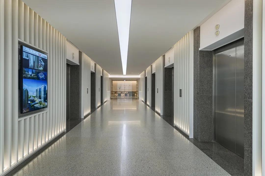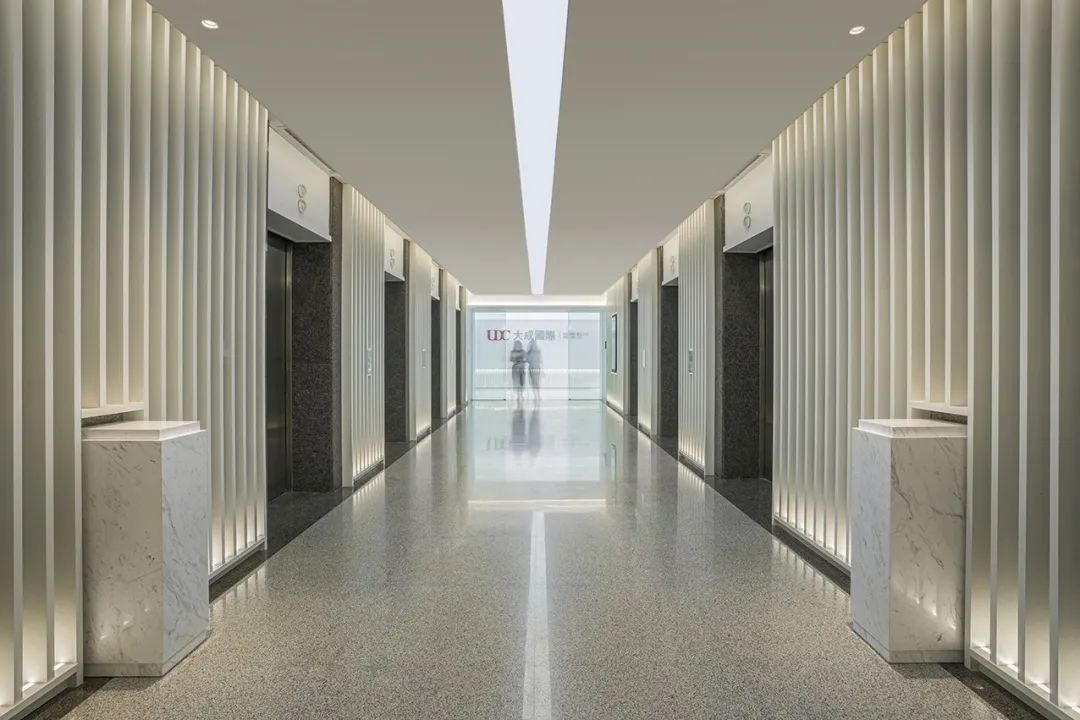 “一軸” 包含樓層電梯廳、企業門廳、展廳,強調對空間儀式感的營造;