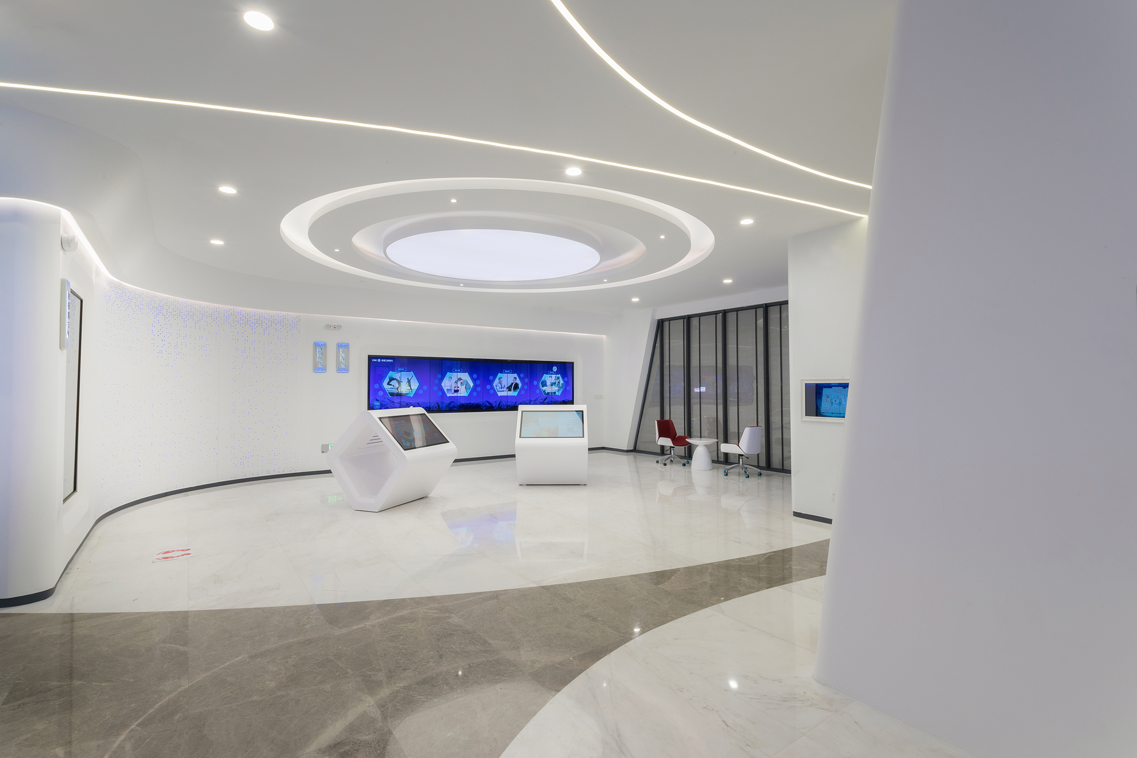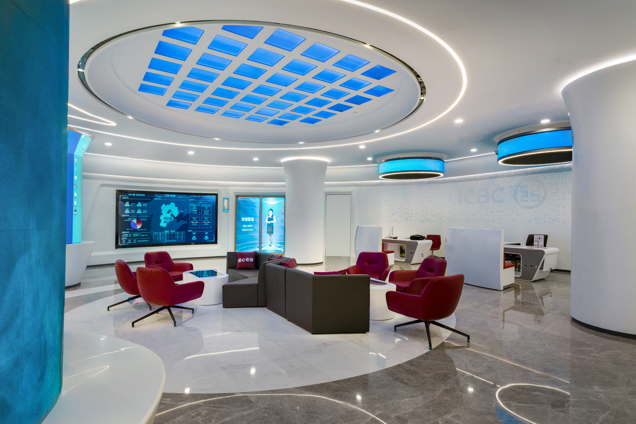 近日,由常宏提供設計服務的中國工商銀行河北分行首家5G技術智慧銀行骨干網點——石家莊中華支行營業室正式亮相。重裝開業的中華支行營業室運用大數據、物聯網、人工智能、生物識別、5G等前沿科技,將金融、社交、生活等場景相連接,為客戶提供多渠道、全方位的服務和智能化、個性化的消費體驗。
