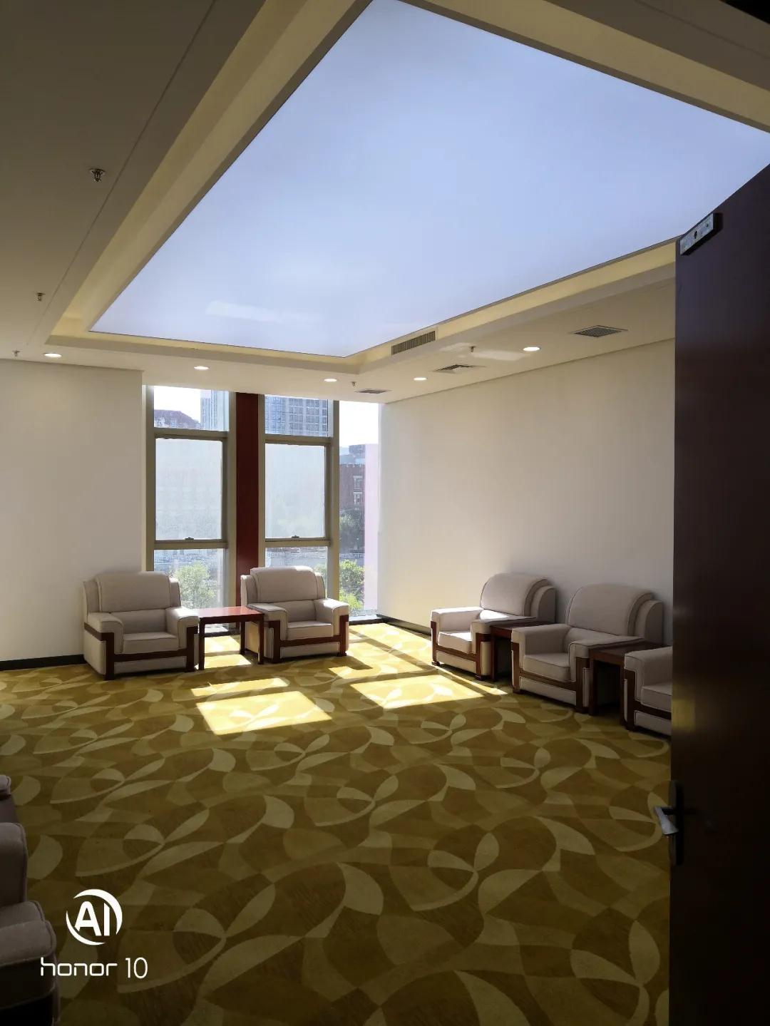 一層營業廳因吊頂面積較大,頂高較高,安裝過程中多次進行加固調整,并增加轉換層。