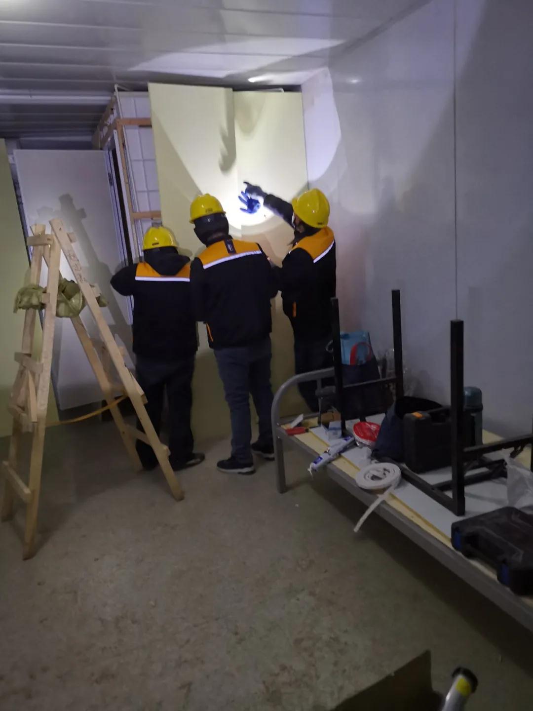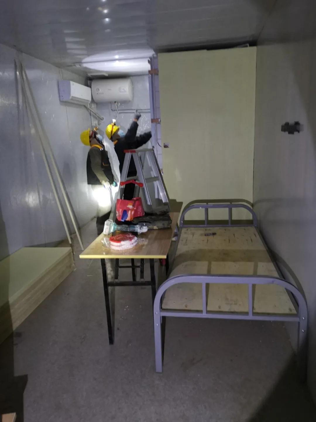 接到指令,馬上參建。19日晚,常宏第一批六名工人進入隔離區施工現場,并迅速連夜投入工作,為隔離間的衛生間外側安裝墻板,直至凌晨。短暫休整后,于20日一早再次投入施工中,仍有更多常宏工人將在辦理完成社區/村/鎮的出入手續后陸續加入到現場。