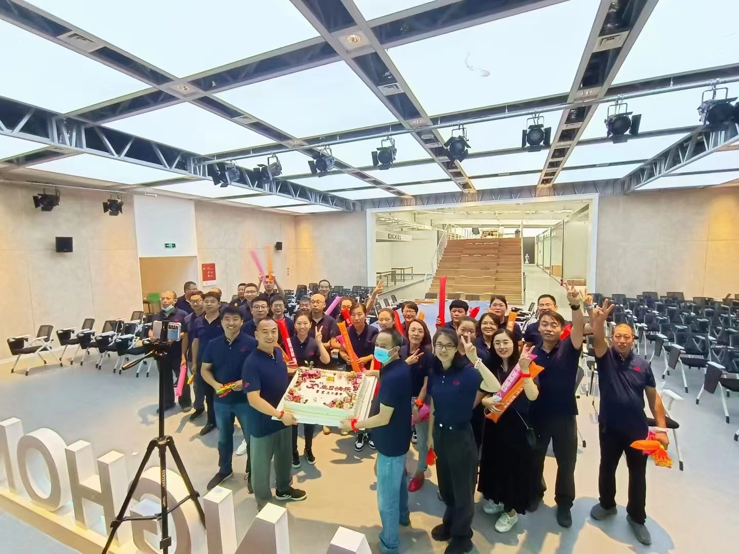 因為突如其來的疫情,我們原本在籌備過程中的線下活動被緊急叫停,沒有靜默的常宏正定產業園還在堅持生產,成為了我們唯一的線下活動會場。能夠相聚的常宏人在產業園展示中心共同參加線上慶典活動,伴隨著美味的蛋糕和生日歌為常宏送上最美好的生日祝福。