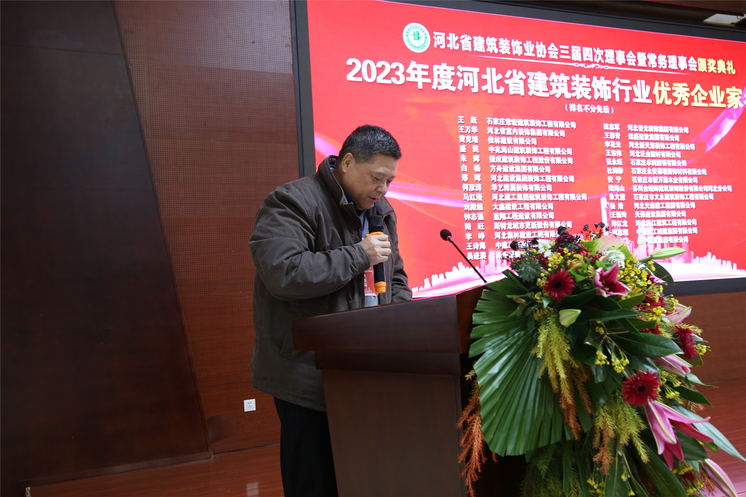 盛民宣讀《關于表彰2023年度河北省建筑裝飾行業優秀企業家的決定》