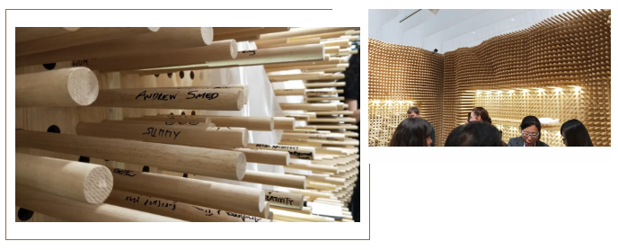 無數(shù)的小木棒暗喻著落地工作的細(xì)致和縝密,來不得半點馬虎,每跟木棒都可以簽上自己的名字,說明每一個項目都有著無數(shù)的默默無聞的建設(shè)者。最后來個合影打個卡,呵呵!