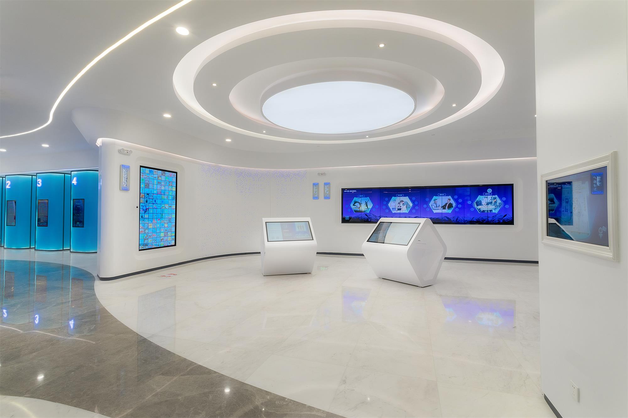 智慧金融:用戶可通過“互動商城”、“智慧樹”等,實現融e購、e生活、銀行卡及金融超市產品掃碼購買;數字同屏可互投展示熱銷產品,實現對公、個人等綜合業務辦理;遠程專家支持,提升服務效能;智能貨柜,使線上預約產品客戶自助領取全面替代柜面交付,提升客戶體驗。