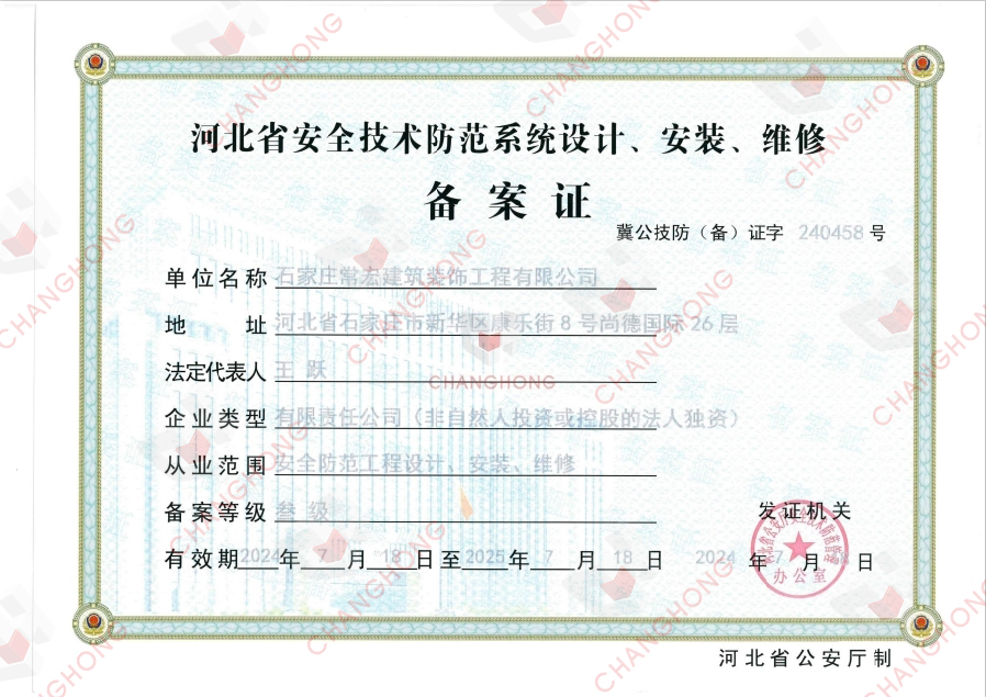 石家莊常宏建筑裝飾工程有限公司,高新技術(shù)企業(yè),擁有建筑裝飾甲級設(shè)計、建筑幕墻工程/消防設(shè)施工程設(shè)計專項乙級、建筑裝修裝飾工程專業(yè)承包壹級、建筑工程施工總承包貳級、幕墻/機電/鋼結(jié)構(gòu)/消防設(shè)施/鋼結(jié)構(gòu)電子與智能化工程專業(yè)承包貳級資質(zhì)。