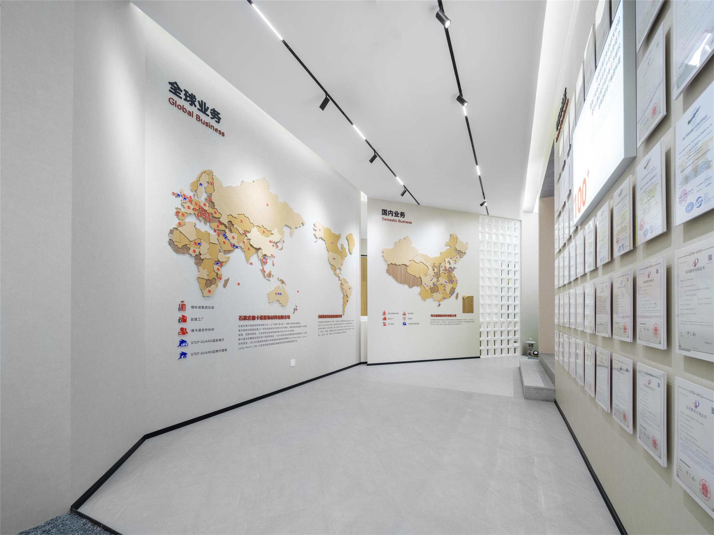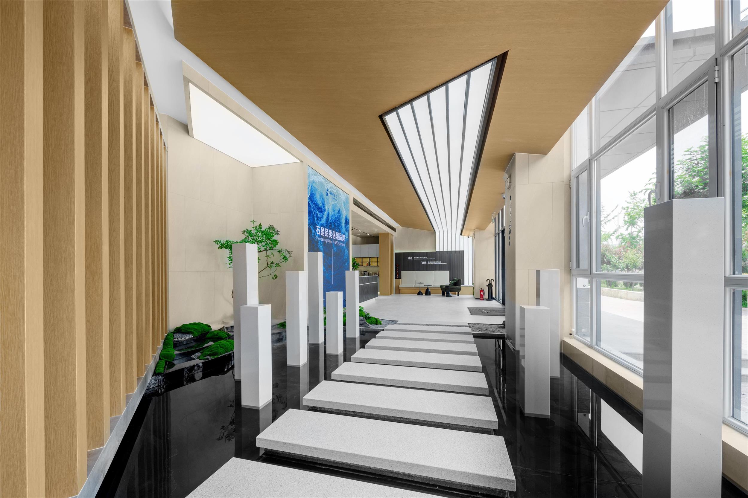 小藍(lán)鯨正定保稅區(qū)品牌形象展廳立足于企業(yè)歷史文化的戰(zhàn)略性總結(jié),以524平方米的一層空間為載體,融合品牌宣傳、產(chǎn)品展示、客戶接待等多重功能。作為連接辦公空間與生產(chǎn)園區(qū)的樞紐,展廳不僅承載著品牌形象的對外傳播,更通過設(shè)計的力量,將企業(yè)文化與創(chuàng)新精神具象化。